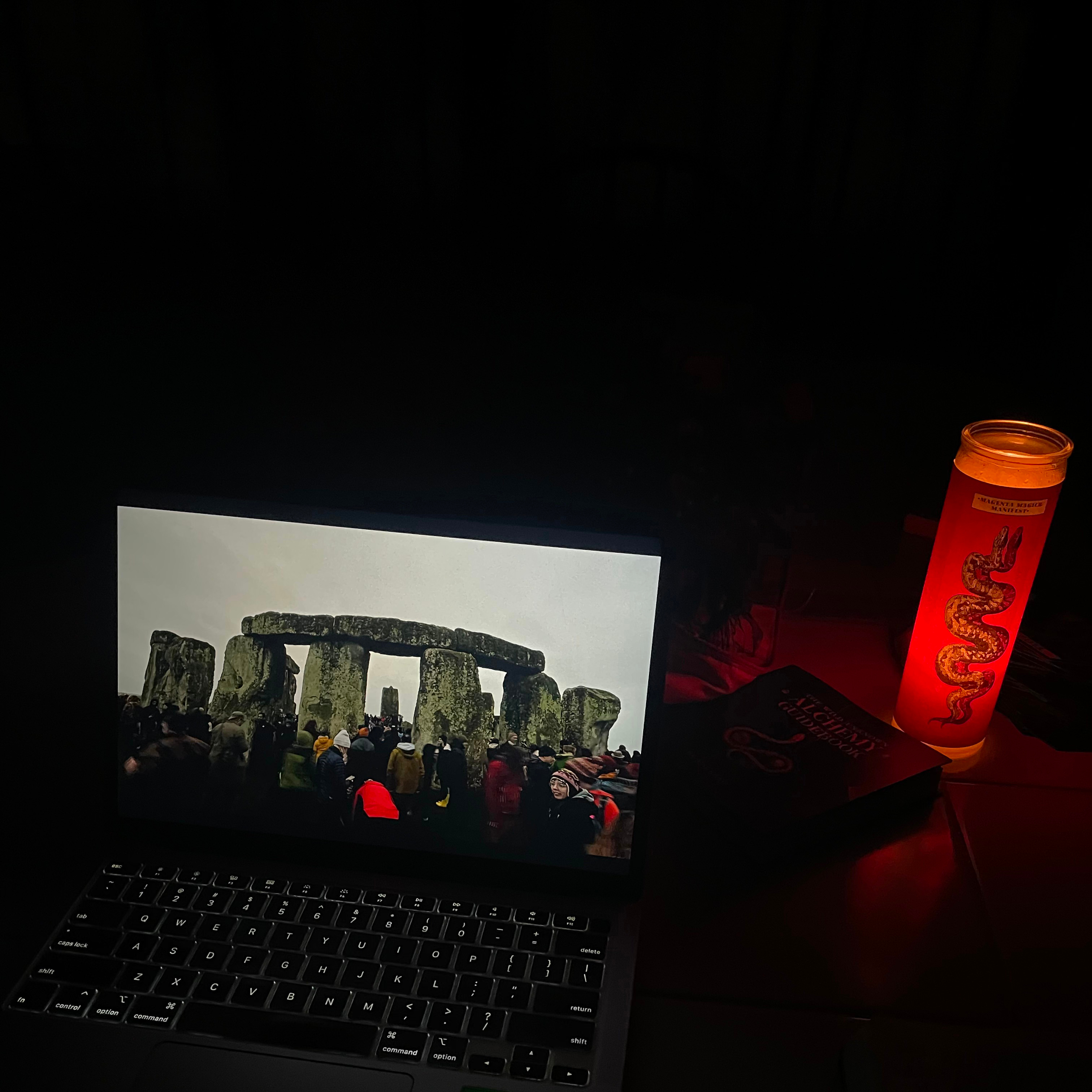 It’s almost midnight in California but I’m watching the sun rise in Stonehenge. One world away, England is calling my name. I think of magick, the winter solstice. The darkest night of the year. Someone to dance at Stonehenge with.
