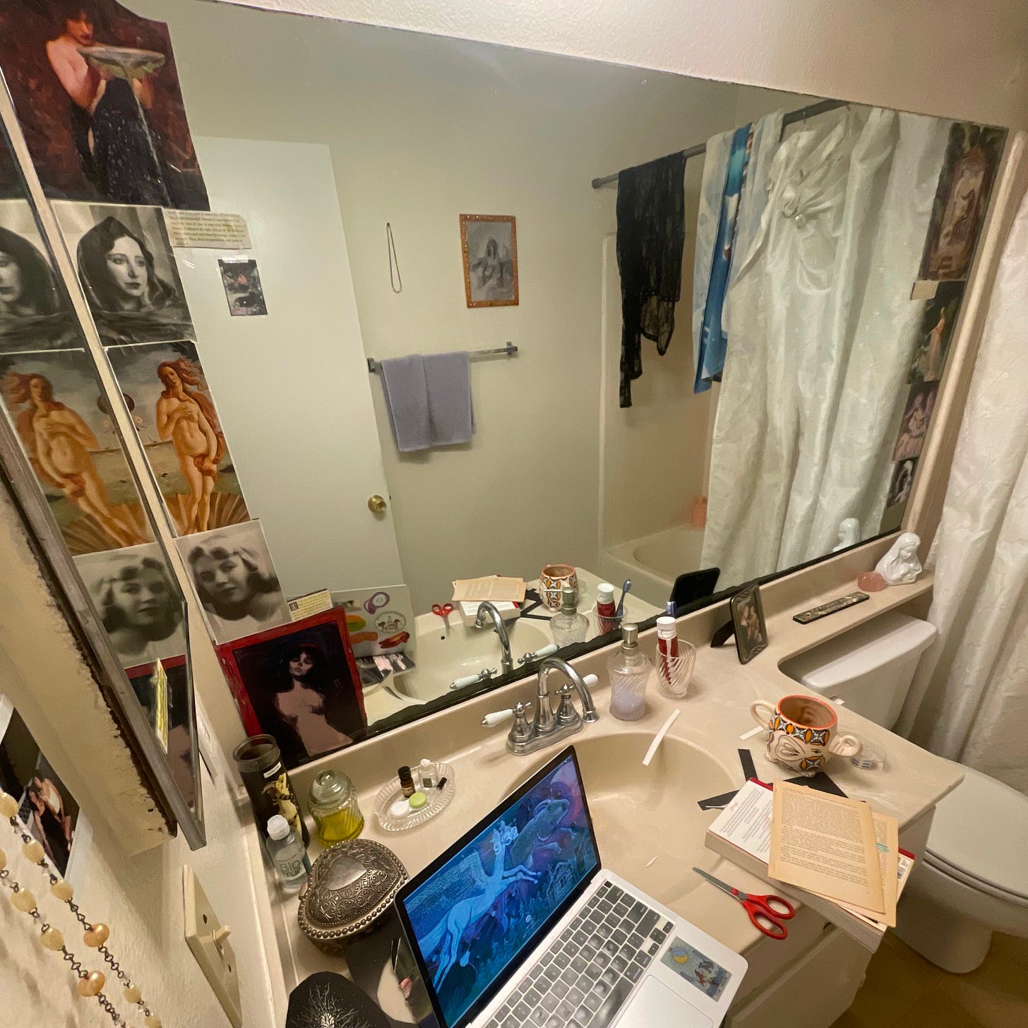 Let the rain come down, I’m coming clean. Water calls. Water whispers. I made my bathroom a prettier place. I make everything prettier if I can help it. If I don’t have friends right now, I’ll be my own friend.