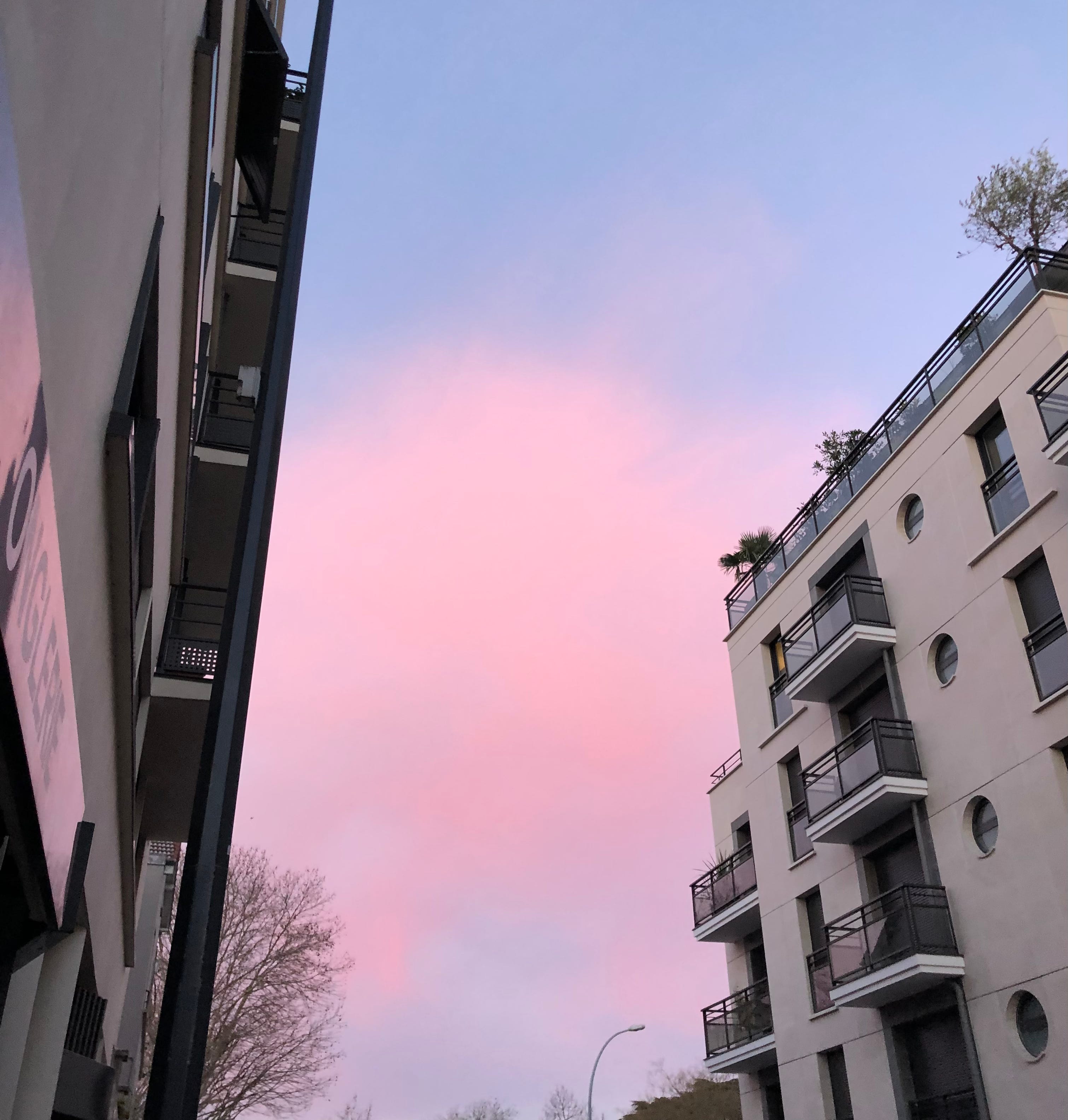 I bought a box of Laduree macarons that I put in my fridge. The next morning, as the sun was rising, I exited my apartment. I put an entire rose macaron in my mouth, my breakfast as it were. And there, below a very pink morning sky, in my powder-pink coat, and a rose macaron melting in my mouth, I reached my thesis at last.